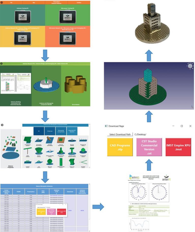 Anten’it Library is a software to use Anten’it products easily. There are more than 200 brick-based antenna models and more than 100 microwave component models in the software. Depending on the Anten’it product you have, the related part of the software is activated.  Our users can design and model their structures in the simulation environment and then build with the real Anten’it blocks.